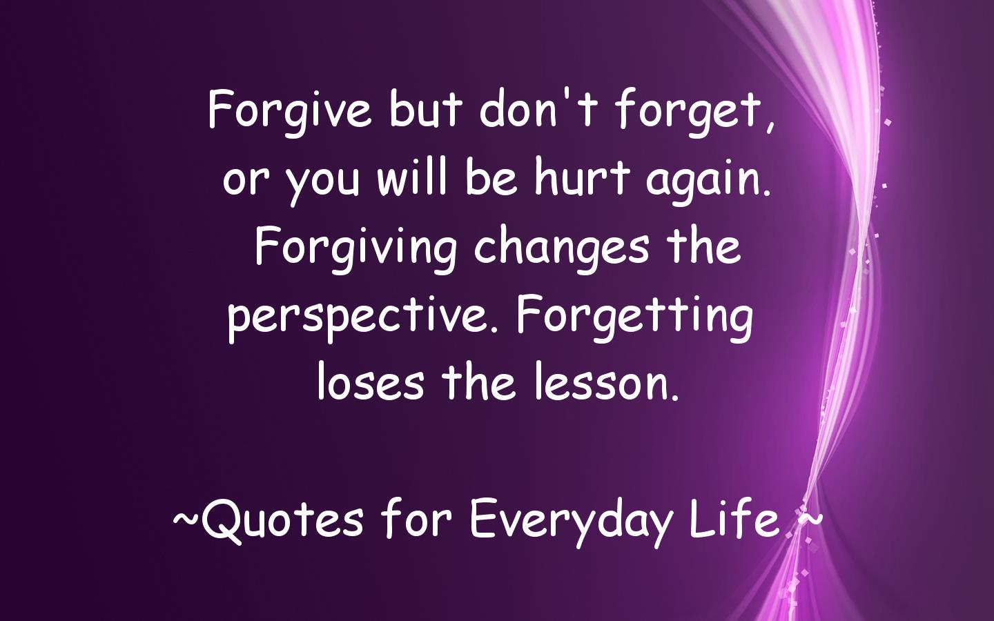 The six main religions disagree on how many times you should forgive someone- but they all agree on one thing and that is forgiveness is a good thing- for your own peace of mind if nothing else. In time forgiveness is often possible once we have had the space needed to process our feelings, but forgetting is much more difficult. Like it says in the quote below – we actually may need to remember what we have learnt from the experience; and this sometimes may involve ending toxic relationships if they are harming us.
